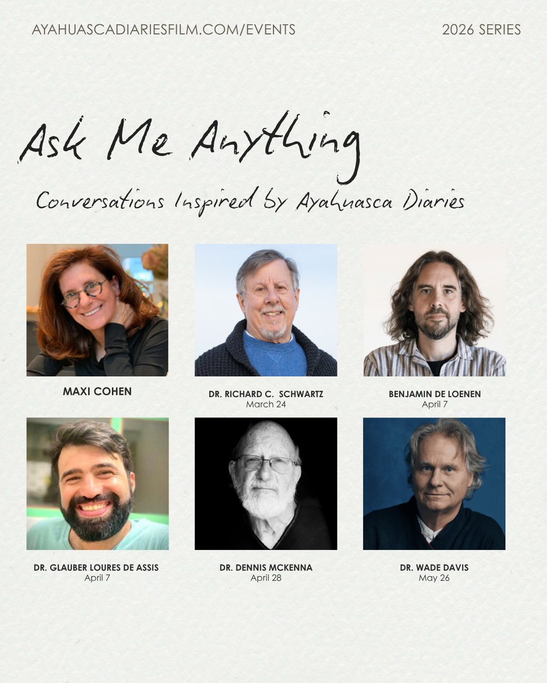 Hosted by Cohen, this live AMA series invites you to converse with today’s most visionary thinkers exploring consciousness, healing, and the wisdom of plant medicines. Each session offers a rare chance to ask questions directly and dive deeper into these themes.